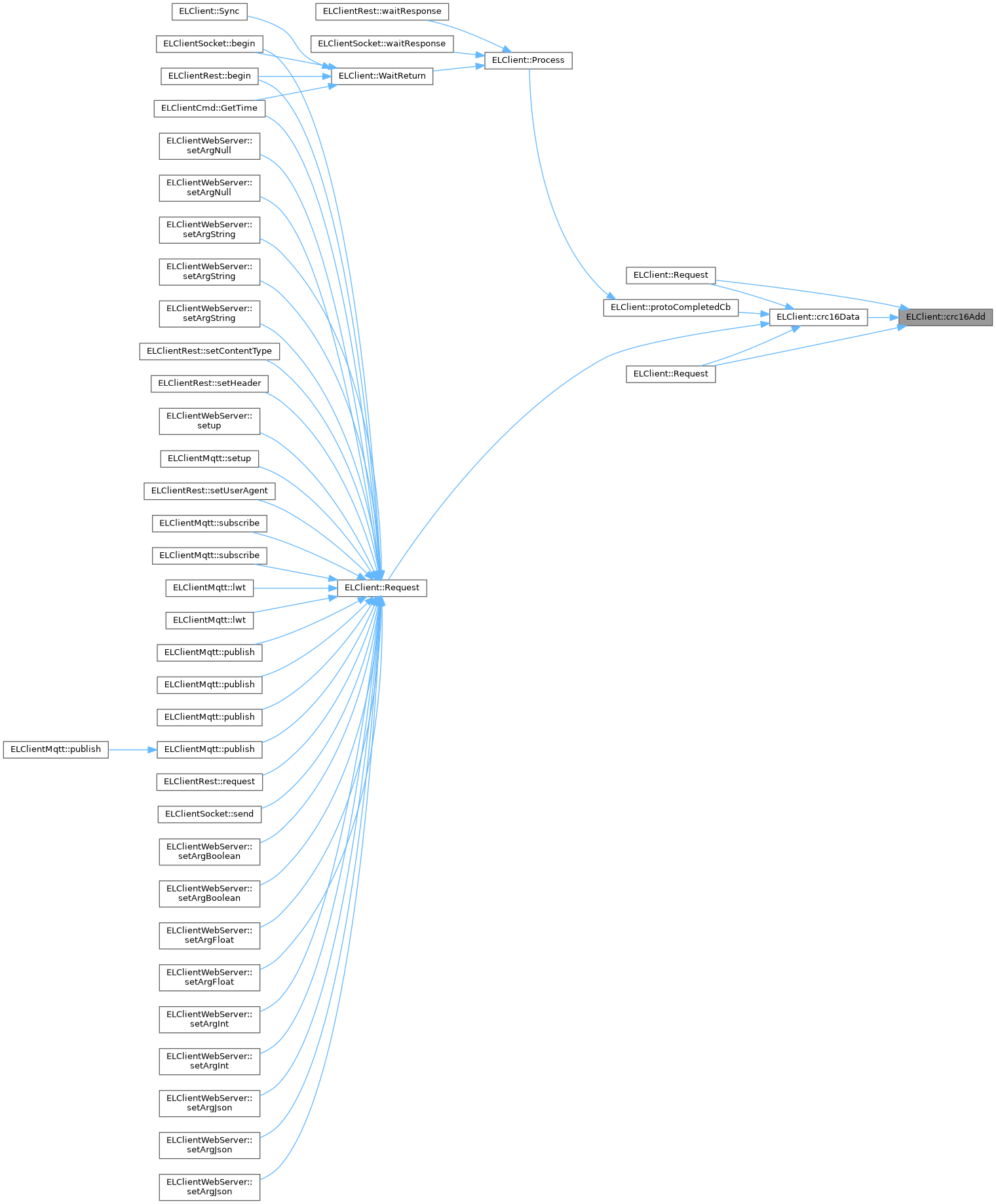 | uint16_t ELClient::crc16Add | ( | unsigned char | b, |